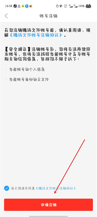 5、在帳號注銷頁面,點(diǎn)擊申請注銷按鈕即可。