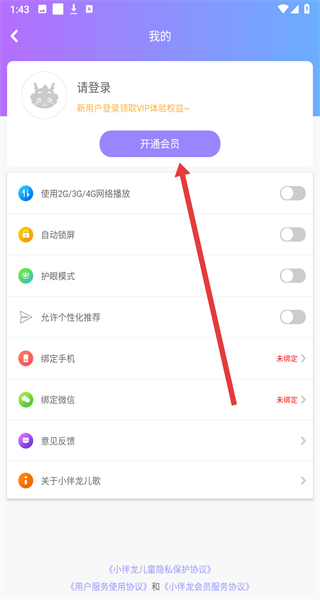 1、在小伴龍兒歌APP中,點(diǎn)擊右下角“我的”,進(jìn)入個(gè)人中心頁面。