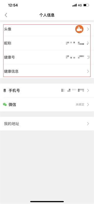 3、點(diǎn)擊頭像、昵稱、健康信息等選項(xiàng),即可進(jìn)行個(gè)人信息修改操作。