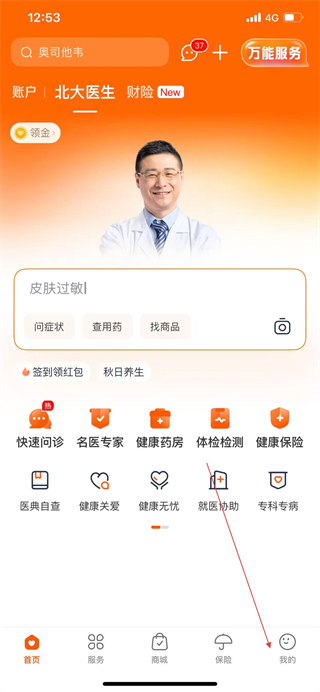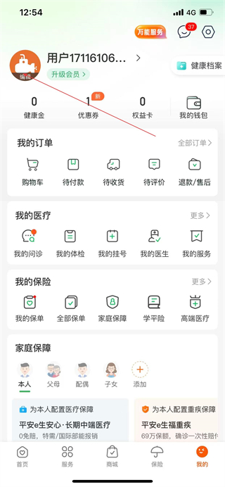 1、打開平安好醫(yī)生APP,點(diǎn)擊導(dǎo)航欄我的,進(jìn)入個(gè)人中心頁(yè)面。