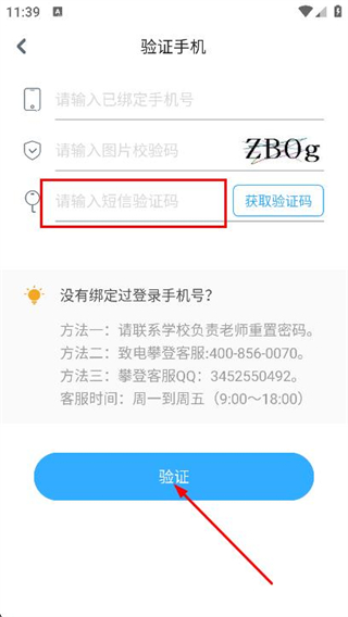 3、填寫收到的驗證碼,點擊驗證,按照后續(xù)提示設置新密碼即可找回密碼。