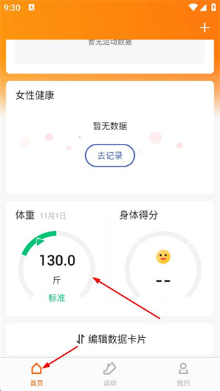 1、打開小米手環(huán)APP,在首頁點擊體重板塊。