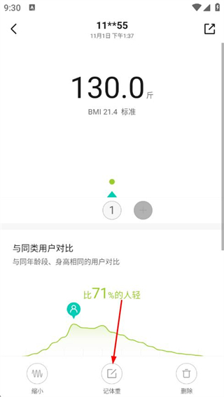 2、進入體重頁面后,點擊“記體重”按鈕。