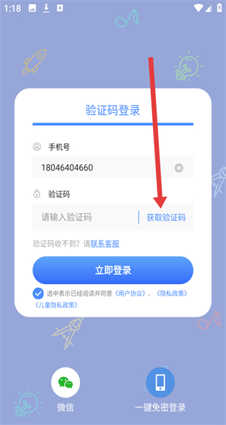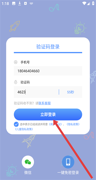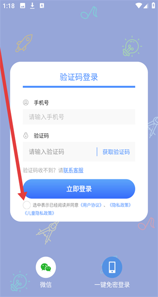 1、點(diǎn)擊同意按鈕,同意《用戶(hù)協(xié)議》《隱私政策》《兒童隱私政策》,進(jìn)入登錄界面。