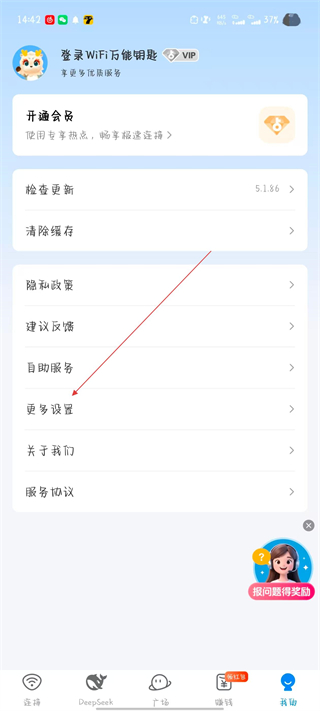1、打開WiFi萬能鑰匙,在我的頁面點擊更多設(shè)置。