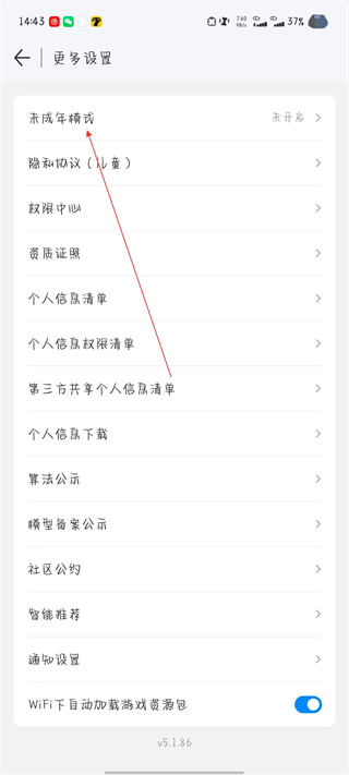 2、進入更多設(shè)置頁面后,點擊未成年模式選項。