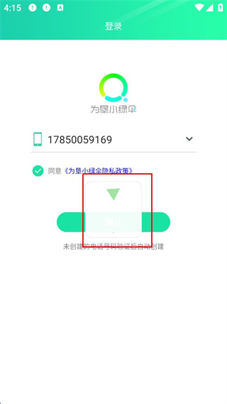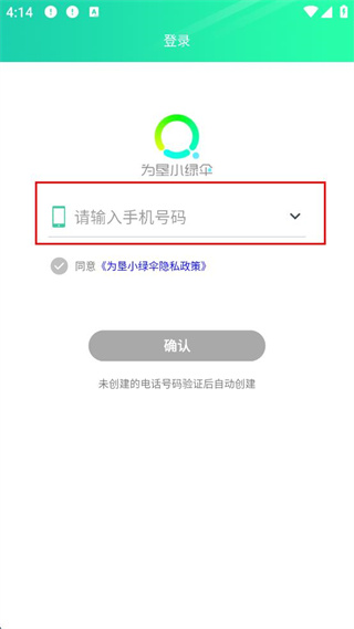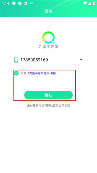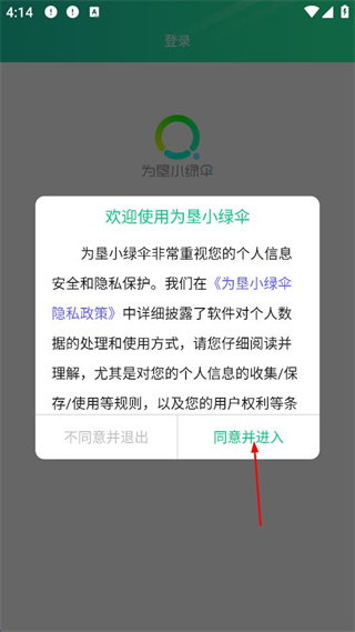 3、勾選同意為墾小綠傘隱私政策后點擊“確認”。