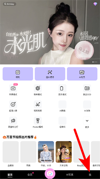 1、打開美顏相機(jī)應(yīng)用,點(diǎn)擊底部導(dǎo)航欄的我選項。