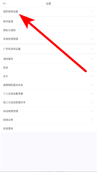 3、在設(shè)置頁面點(diǎn)擊我的拍照設(shè)置,進(jìn)入我的拍照設(shè)置頁面。