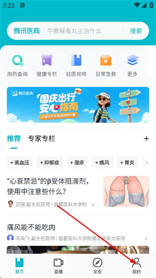 2、在騰訊醫(yī)典首頁,點擊右下角我的,進入個人頁面。