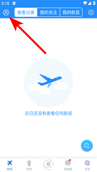1、打開飛常準(zhǔn)APP,點(diǎn)擊左上角的個(gè)人圖標(biāo),進(jìn)入個(gè)人頁面。