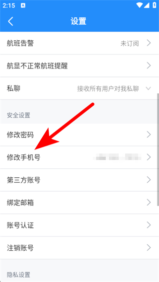 3、在設(shè)置的頁面,我們需要點(diǎn)擊修改手機(jī)號(hào)的這個(gè)選項(xiàng)。