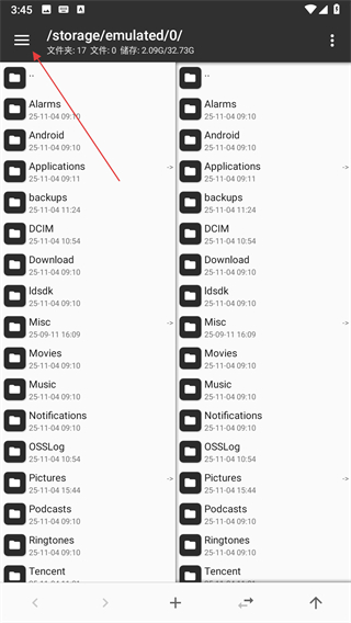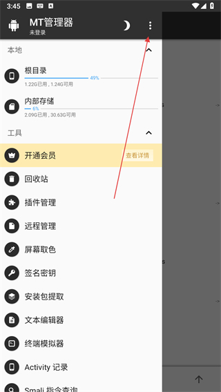 1、打開MT管理器APP,點擊三條橫線菜單圖標(biāo)。