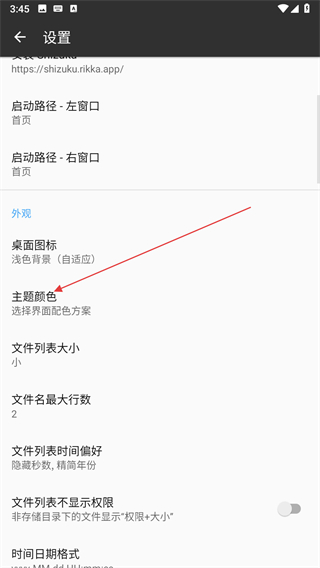 3、在設(shè)置頁面,點擊主題顏色選項。