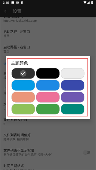4、在主題顏色選擇頁面,可選擇多種顏色。