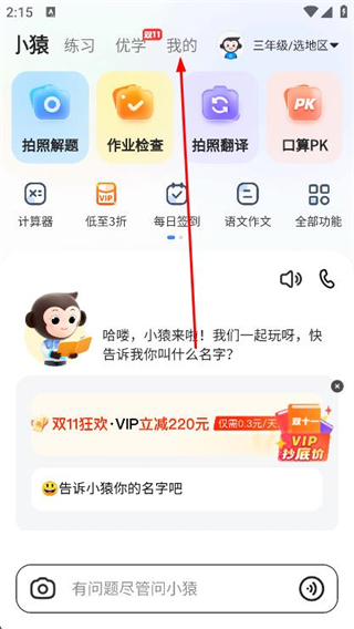 1、打開小猿搜題,點擊頂部導航欄我的選項。