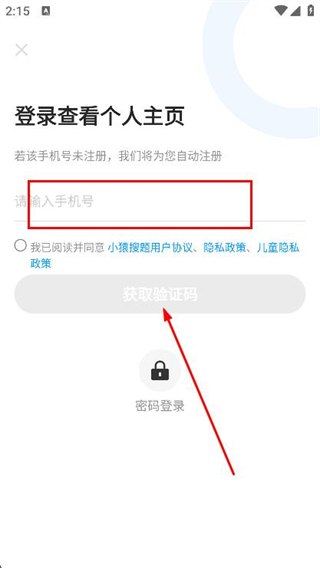 3、在登錄頁面,輸入手機號碼,并獲取驗證碼。