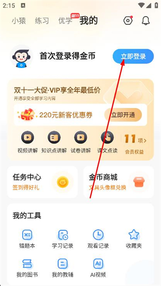2、在我的頁面中,點擊上方的立即登錄選項。