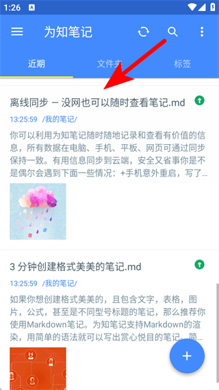 1、打開為知筆記應(yīng)用,點擊需要收藏的筆記,進入筆記詳情頁面。