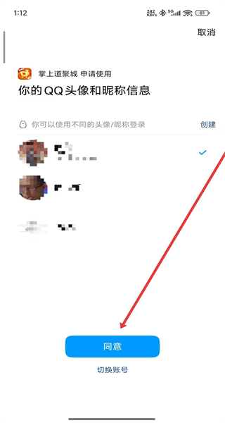 3、QQ授權(quán)頁面點(diǎn)擊“同意”,完成賬號(hào)登錄操作。