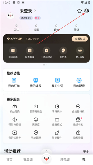 2、在我的頁面,點(diǎn)擊右上角的設(shè)置圖標(biāo)。