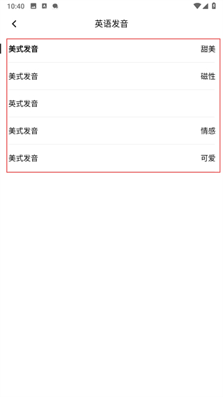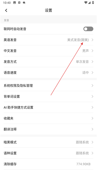 4、在英語發(fā)音頁面,選擇想要的發(fā)音類型。