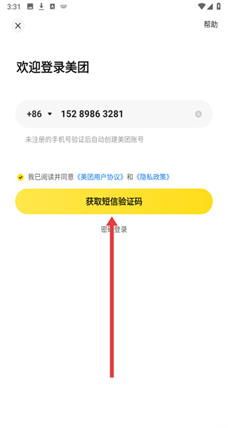 3、進入登錄頁面輸入手機號碼,點擊“獲取短信驗證碼”。