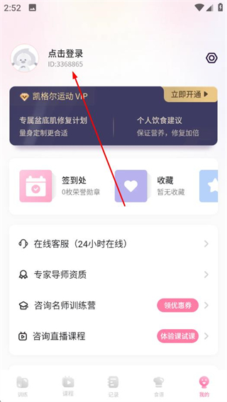 1、打開凱格爾運動APP,點擊底部我的。