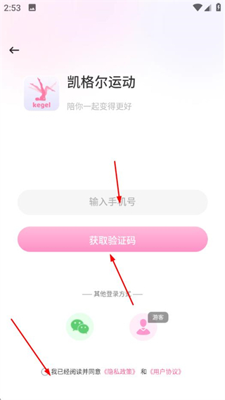 3、在登錄注冊頁面勾選,輸入手機號后點擊獲取驗證碼。