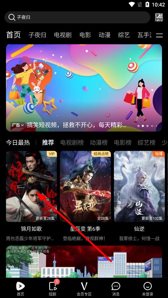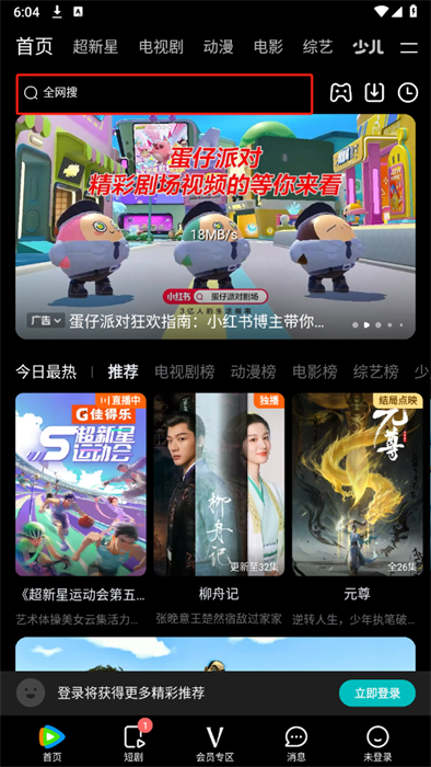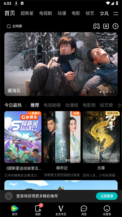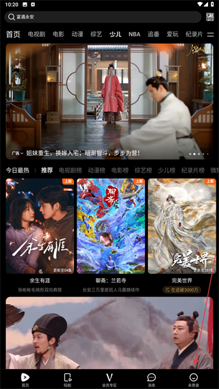 1、打開騰訊視頻APP,在首頁的「今日最熱」「推薦」等板塊,找到2025年最新電視劇,點擊劇集封面進入播放詳情頁。