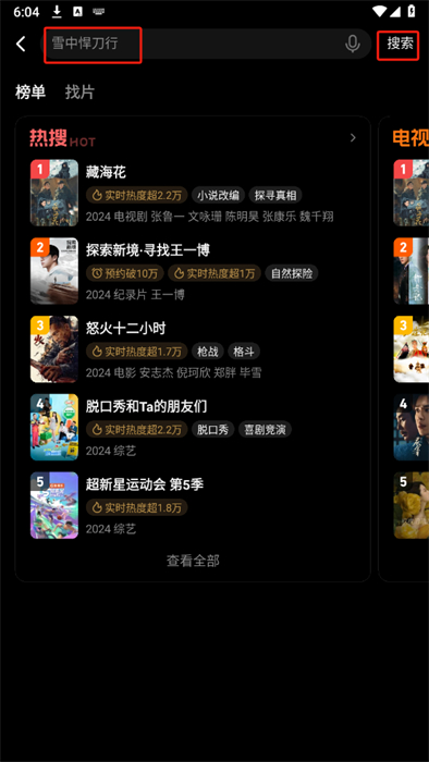 2、在輸入框內(nèi)輸入電視劇名稱后,再點擊搜索的按鈕。