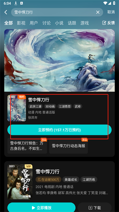 4、此時玩家將可以看見對應的劇目,點擊即可進行觀看或者是預約。