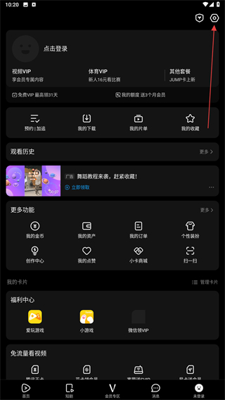 1、打開騰訊視頻APP,在首頁內(nèi)點擊右下角未登錄的圖標。