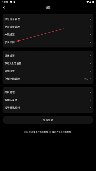 3、進入設置的界面內(nèi),找到并點擊家長守護的功能按鈕。
