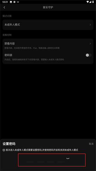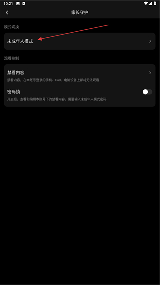 4、在家長守護的頁面內(nèi),點擊未成年模式的功能按鈕。