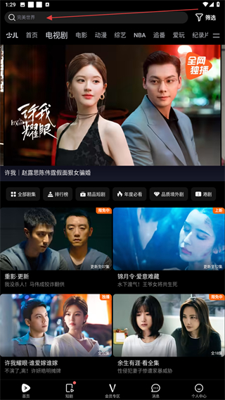 2、如果用戶想要找到某一個特定的電視劇時,可以點擊上方的搜索框;