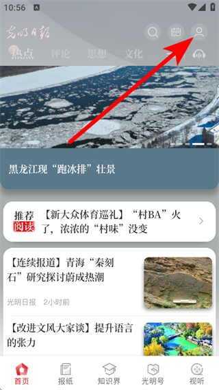 1、打開光明日報APP,點擊首頁右上角個人圖標(biāo)。