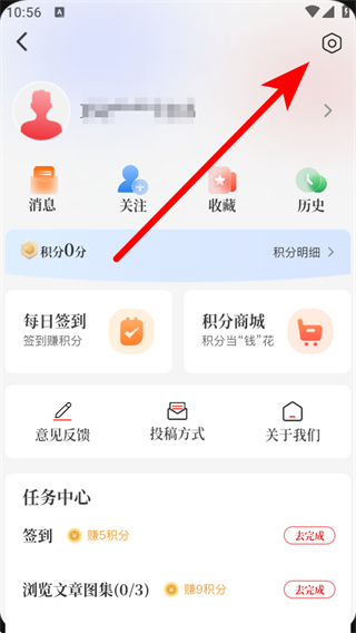 2、在個人頁面中,點擊右上角的設(shè)置圖標(biāo),進入系統(tǒng)設(shè)置頁面。