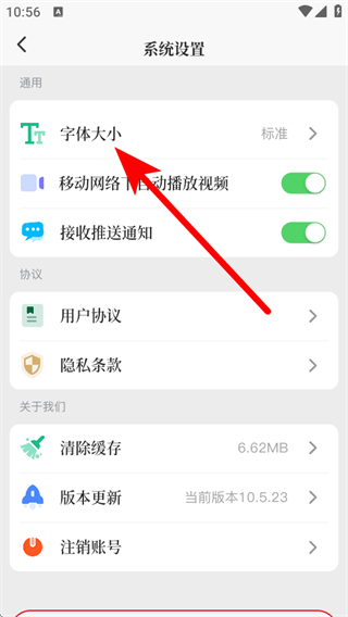 3、在系統(tǒng)設(shè)置頁面,點擊字體大小,進入字體大小設(shè)置頁面。