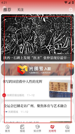 光明日報app為了滿足用戶日益增長的網(wǎng)絡(luò)新聞閱讀量,打造了電子版《光明日報》光明日報客戶端,來實現(xiàn)用戶在手機客戶端進行《光明日報》內(nèi)容閱讀。