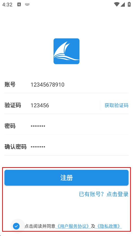 4、勾選閱讀并同意相關(guān)協(xié)議,點(diǎn)擊注冊(cè)按鈕完成注冊(cè)。