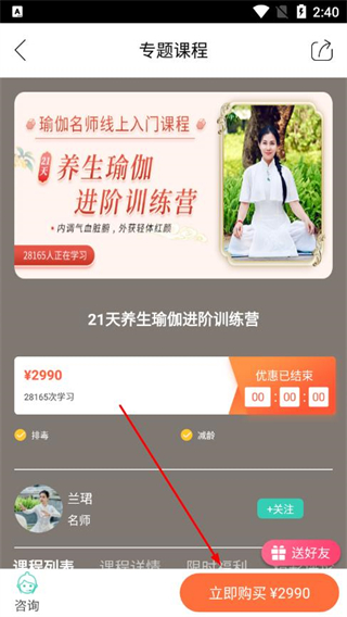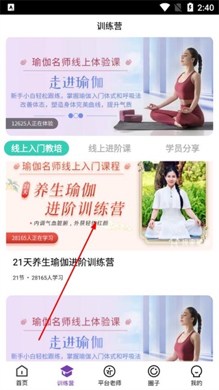 2、在訓(xùn)練營頁面選擇感興趣的訓(xùn)練營,如21天養(yǎng)生瑜伽進階訓(xùn)練營。