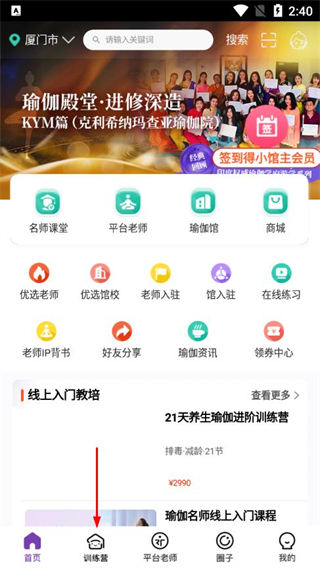 1、打開我家瑜伽APP,點擊底部導(dǎo)航欄的訓(xùn)練營選項。