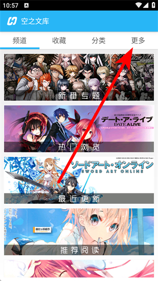 1、在空之文庫(kù)首頁(yè),點(diǎn)擊右上角更多選項(xiàng),進(jìn)入更多功能頁(yè)面。
