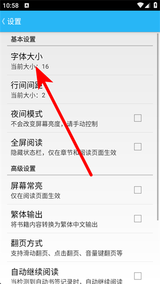 3、在設(shè)置界面,點(diǎn)擊字體大小選項(xiàng),彈出字體大小調(diào)節(jié)框。