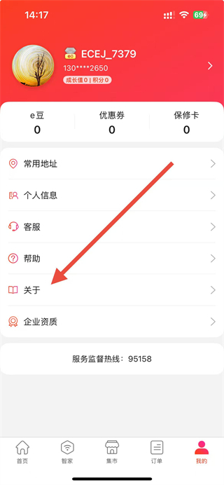 1、在e城e家我的主頁中,點(diǎn)擊我的信息選項(xiàng)可進(jìn)入查看或更改信息。