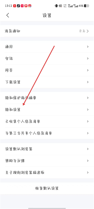 2、在設(shè)置頁面,點擊隱私設(shè)置選項。