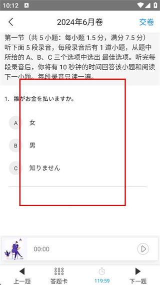 4、進(jìn)入試卷頁面即可開始作答,完成后點擊交卷即可結(jié)束考試。