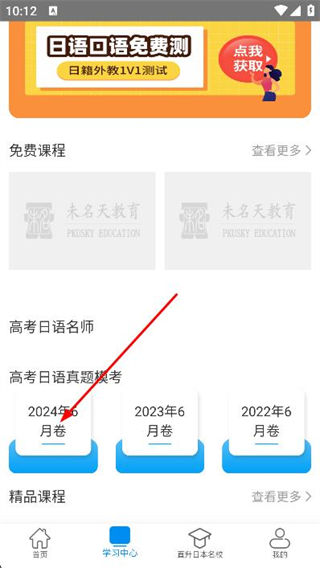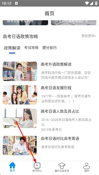 1、打開高考日語app,點擊底部導(dǎo)航欄的學(xué)習(xí)中心選項。
