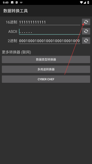4、輸入數(shù)據(jù)后,點擊輸入框右側(cè)的轉(zhuǎn)換箭頭按鈕,即可完成不同數(shù)據(jù)類型之間的轉(zhuǎn)換操作。